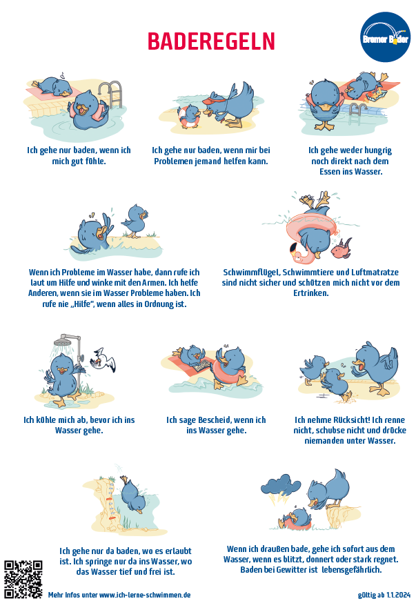 Für das Schwimmen solltest du die Baderegeln lernen.